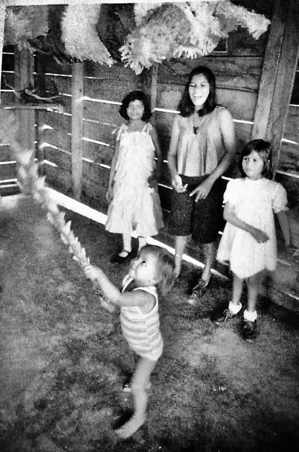 This is Sandra—the youngest of the kids next door having her turn at the piñata Steve and I made for them.