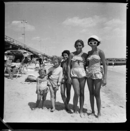My fondest memories are those I spent swimming in the ocean with mom. She was a strong, confident and beautiful swimmer with a long, graceful stroke, which she learned by watching Johnny Weissmuller (Tarzan) and Esther Williams (Jane) in the movies. With me perched on her back holding onto her bathing suit straps, she would swim far out to sea, a long way past where the jetties ended and the waves would break. Dad captured us riding the waves into shore. I was just 5 years old.