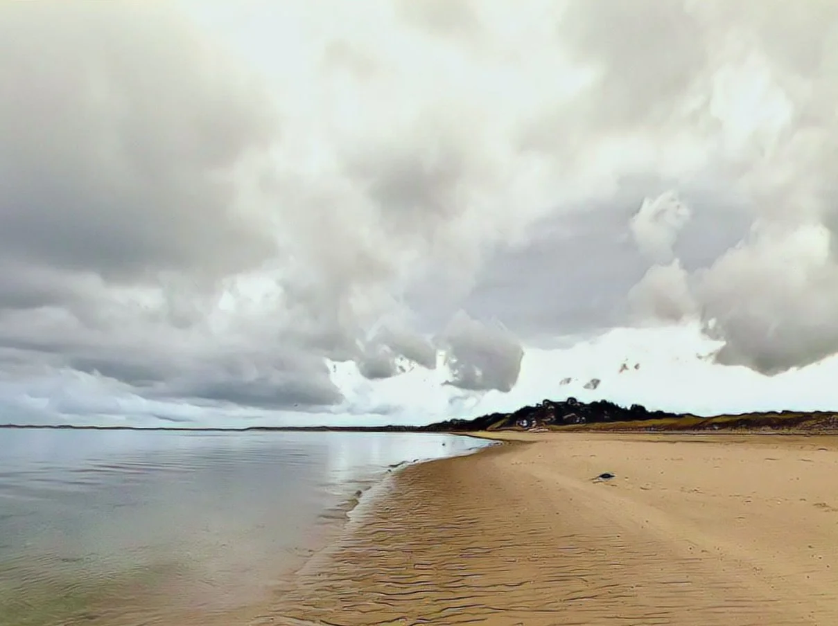 Every springtime since 2005, my husband, our two dogs and I have made the trek out to Cape Cod for a couple of weeks after our college’s graduation. Since retiring from teaching, we have been going twice a year—in the fall as well as the spring—the two best times of the year. We all love the Cape, especially our dogs (both past and present). They frolic on the great expanses of empty beaches where they can run free and chase each other forever and ever; splashing through the water, keeping an eye on the seals and gulls, contemplating sunrises and sunsets. They are truly at their happiest (See “Wizard and Darling Intrepid Princess Violet” in Portfolio 2; “Leo Coyote and Finn” and “More Happy Dogs” in Portfolio 4). I too, love the seemingly endless expanses—of sand, ocean and sky—the miraculous blues of the water below and the heavens above (azure, cobalt, turquoise, midnight, powder, cerulean, lapis, sapphire, indigo, Prussian), the greens of the sea and marshes (teal, emerald, sea, moss, pine, chartreuse, juniper, olive, fern, basil, sage, lime, etc.), the tans of the shore (sand, gold, caramel, orange and brown), and glorious sunrises and sunsets (surprising us with pinks, violets, tangerine, burnt orange, and fiery reds)—all of which present endless photographic possibilities. Every day the light is different—changing with the ever-changing cloud cover, angle of the sun, and moisture in the air. (See all Cape Cod series in Portfolios 1 2 &4).