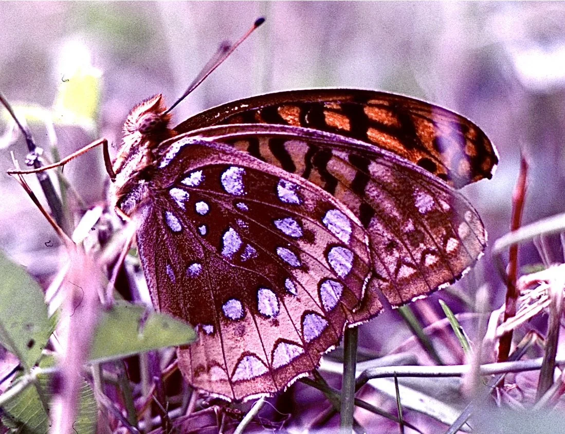 I transferred to Cornell University and after graduating I worked as a lab assistant in Animal Cytogenetics for Professor Stephen Bloom. One of my tasks was to make photo enlargements of the mutations in 4-day old chick embryo chromosomes which I had exposed to various chemicals (food dyes, pesticides, and anti-cancer agents), as part of Bloom’s ongoing mutagenesis research. On weekends, Bloom let me use the darkroom for my own photos. That’s when I discovered Cibachrome—a positive-to-positive process using color transparencies (in my case, Kodachrome 64 and Ektachrome 100) to make color prints. Cibachrome’s intensity, color saturation and luminosity were absolutely thrilling. Of course, the subject matter helped too. My first color prints were of red Trillium—with its rich, blood-red colored petals that signaled springtime in the forests and woodlands around Ithaca—and of the Great Spangled Fritillary—a gorgeous orange, yellow and rust-colored butterfly with black bars and white polka dots.